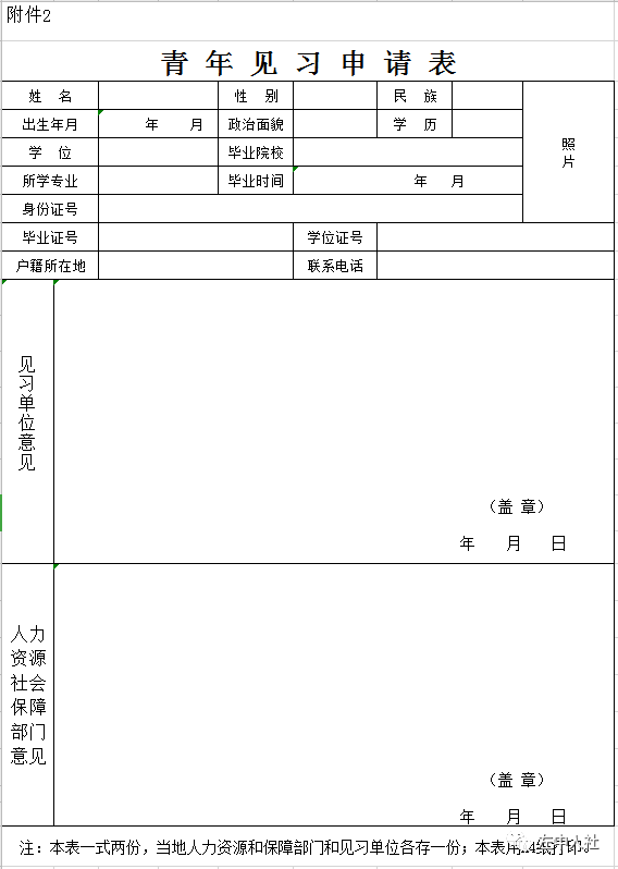 1.《青年見習(xí)申請(qǐng)表》(附件2),一式兩份;