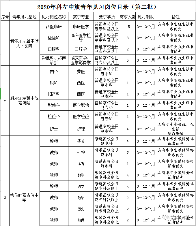 附件1:2020年科左中旗青年見習(xí)崗位目錄(第二批)